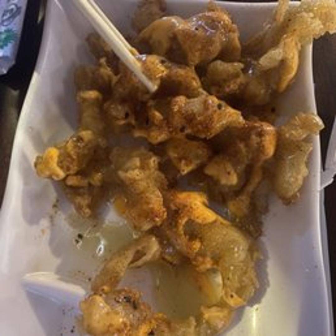 Tender calamari rings lightly battered and deep-fried, then tossed in a spicy sauce. Served hot and crispy.