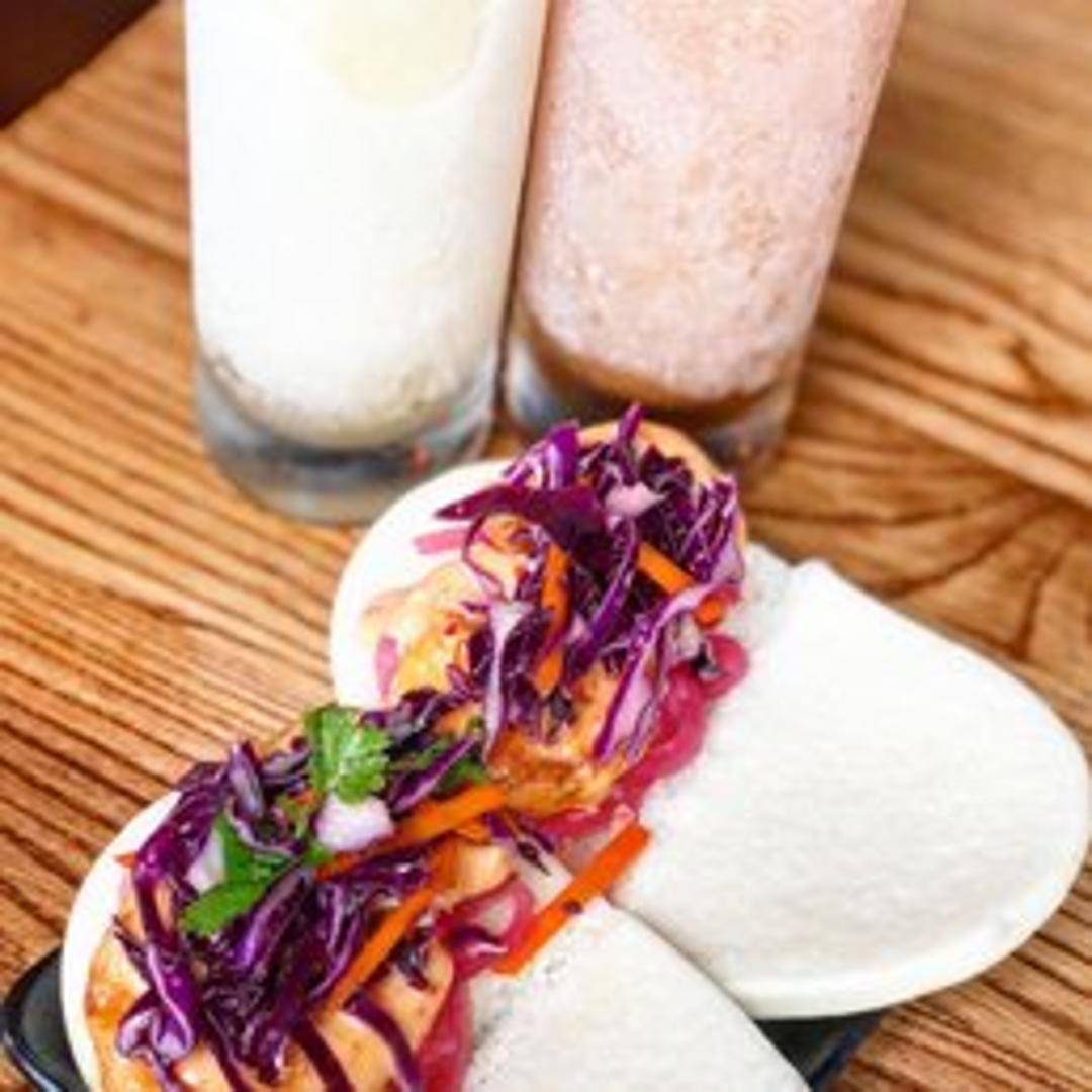 Delicate steamed bao buns filled with succulent, seasoned shrimp. These delectable buns offer a light yet flavorful experience, combining the tender texture of the bun with the fresh, savory taste of perfectly cooked shrimp, often complemented by a subtle sauce or crisp vegetables.