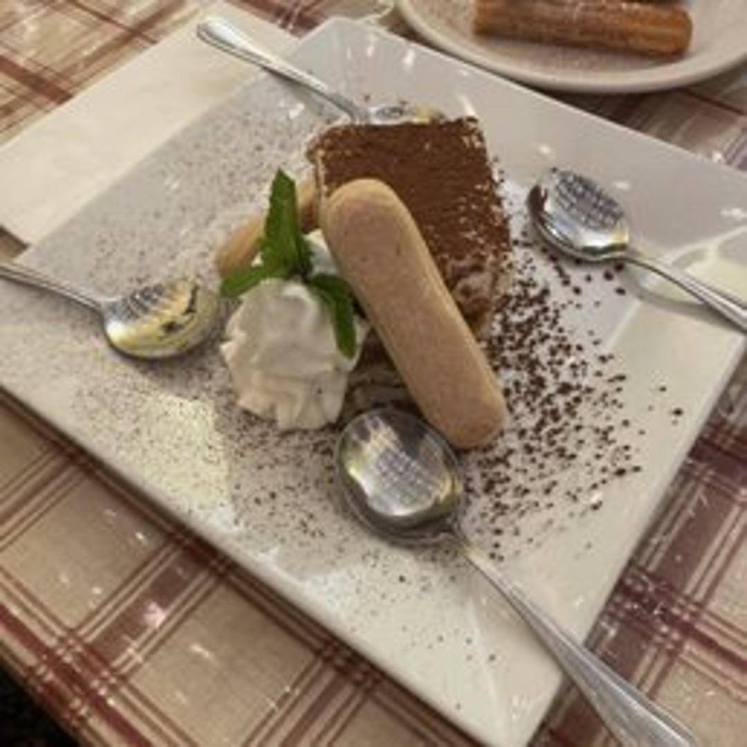 A classic Italian dessert featuring ladyfingers dipped in coffee, layered with a creamy mascarpone cheese mixture, and dusted with cocoa powder.
