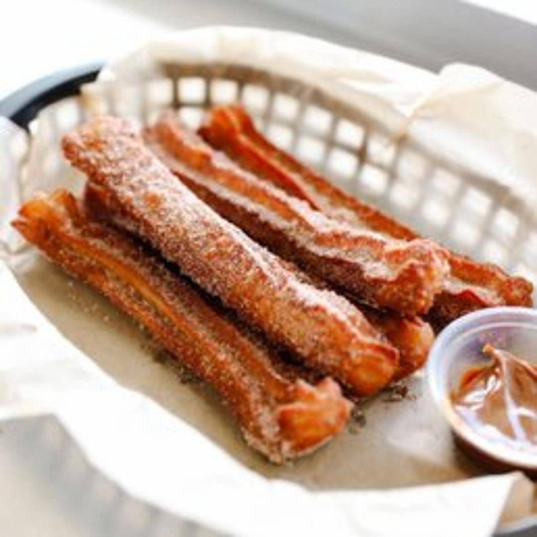 Crispy, fried dough pastries dusted with cinnamon sugar, served with chocolate dipping sauce.