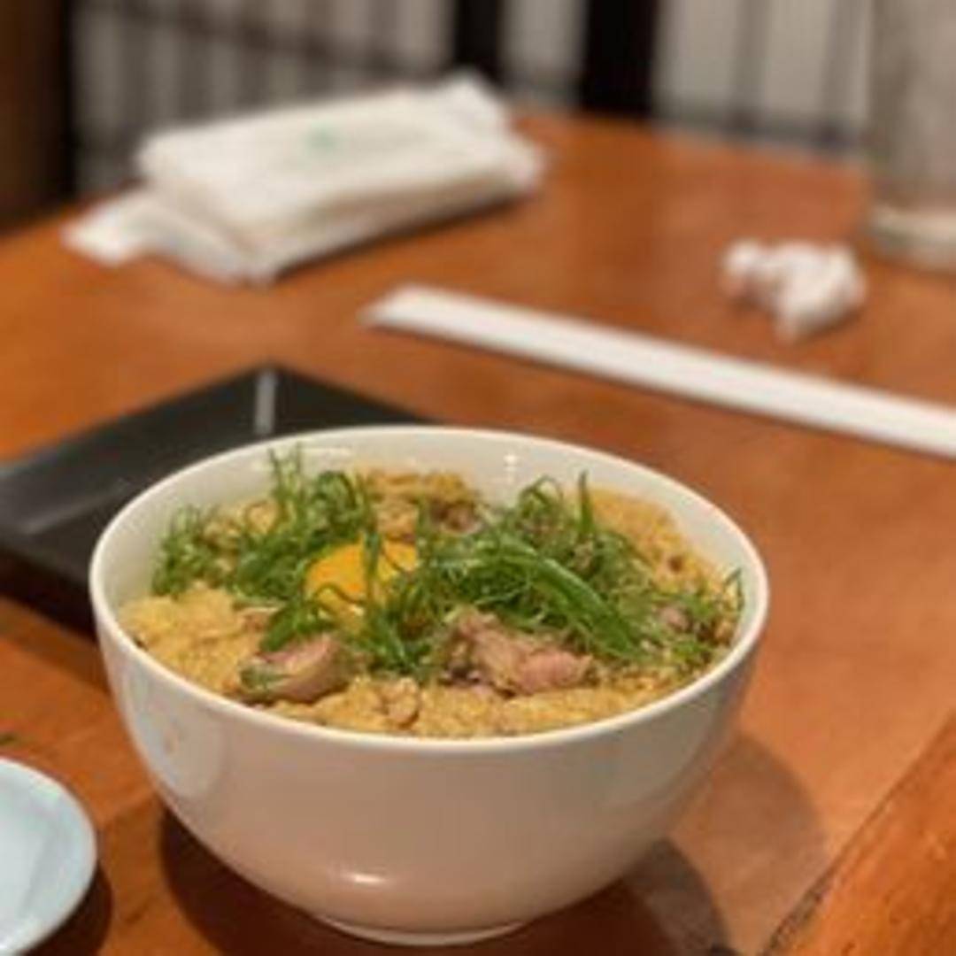 A classic Japanese rice bowl (Donburi) topped with simmered chicken and egg in a sweet and savory dashi-based sauce. The egg is often cooked to a soft and custardy consistency, coating the chicken and rice beautifully.