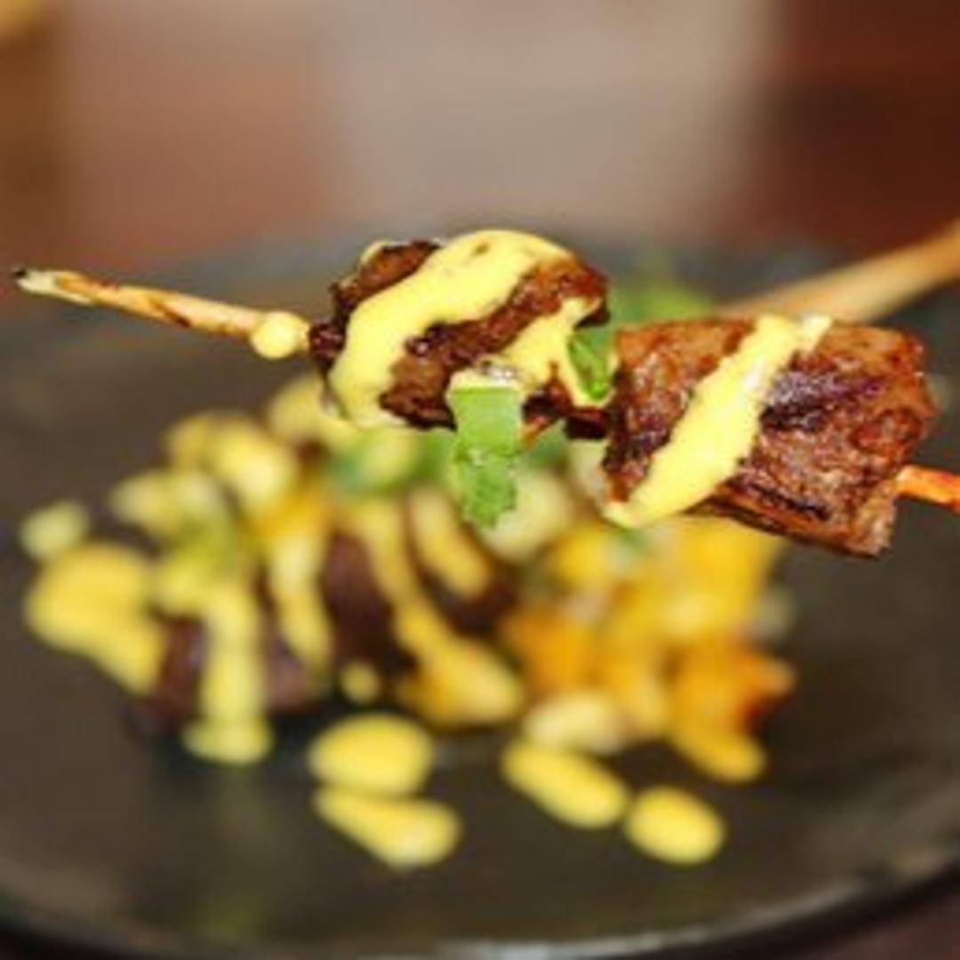 Grilled skewers of tender Colorado bison fillet, marinated in a traditional anticucho sauce, typically made with aji panca peppers, garlic, and vinegar.