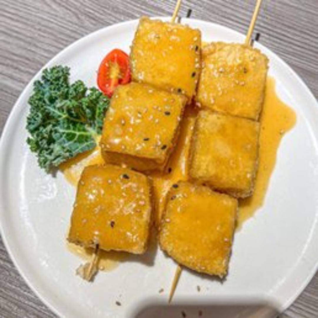 Delicate cubes of silken tofu, lightly battered and deep-fried to achieve a perfectly crispy golden exterior while retaining a tender, custardy interior. Served in a savory dashi-based tentsuyu broth, garnished with grated daikon, fresh ginger, and finely chopped scallions, offering a harmonious blend of textures and umami flavors.