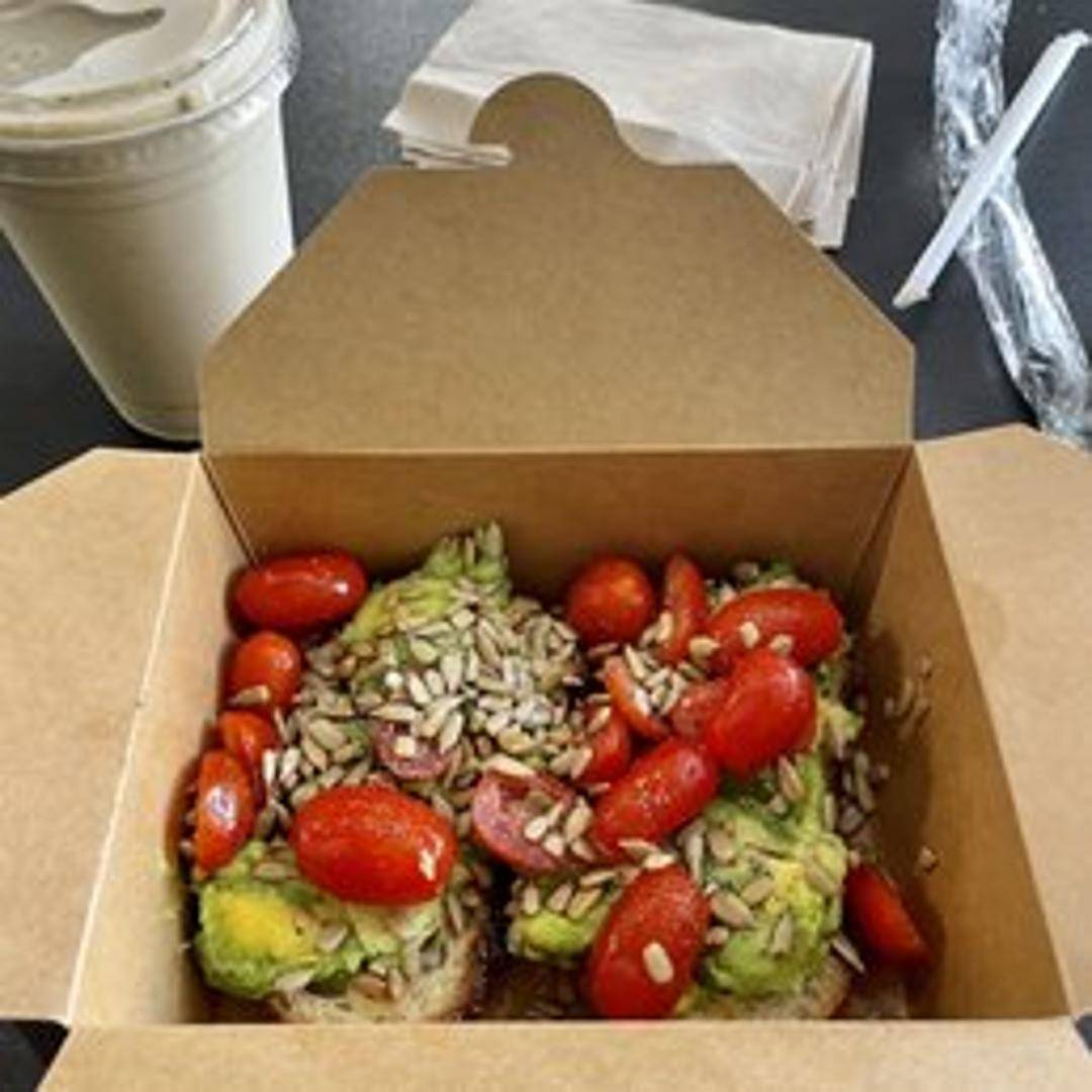 Our Avocado Toast features perfectly toasted artisan bread topped with a generous layer of freshly mashed avocado. Seasoned with a sprinkle of sea salt, red pepper flakes, and a drizzle of olive oil, it's a simple yet satisfying classic. Add an egg for an extra boost of protein!