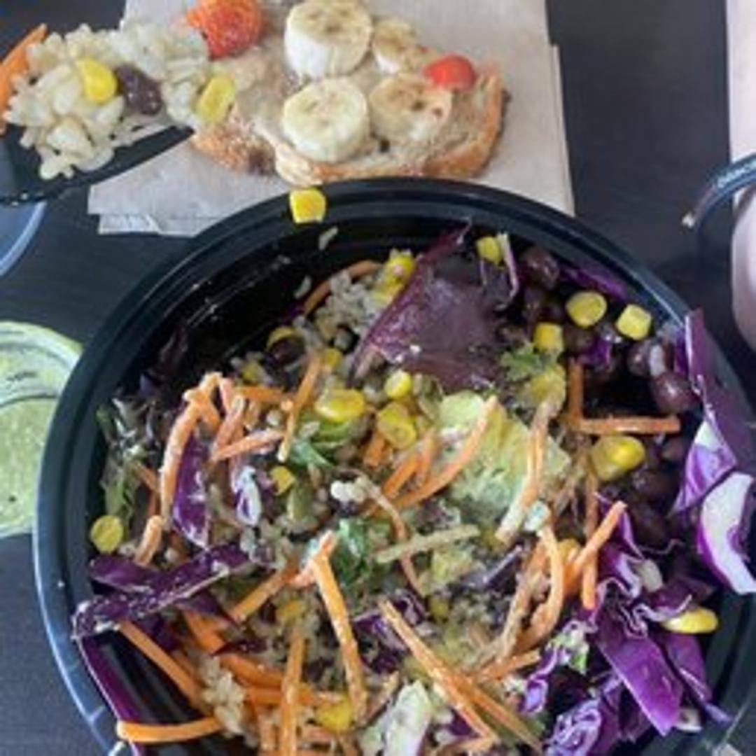 Thick-cut artisan toast generously topped with creamy almond butter. Often includes optional toppings such as sliced banana, a drizzle of honey, a sprinkle of chia seeds, or a dusting of cinnamon.