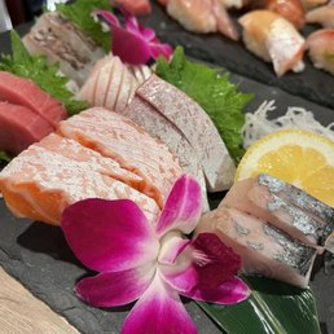 An artistically arranged assortment of the freshest, highest-quality sashimi, hand-selected daily by our chef. Featuring a variety of seasonal cuts, each piece is expertly sliced and presented to showcase its individual flavor and texture. Includes traditional accompaniments such as wasabi, ginger, and soy sauce.