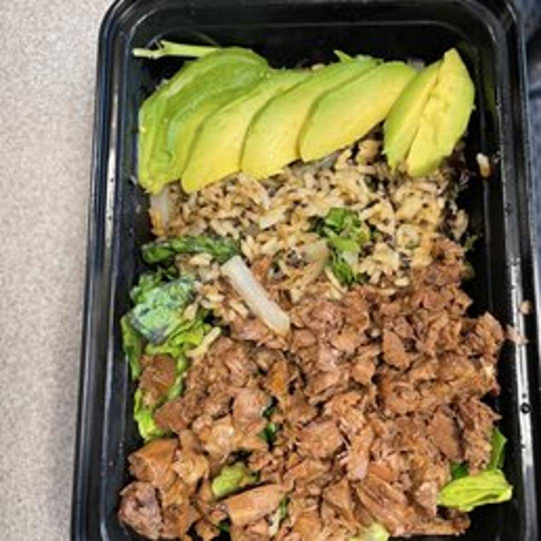 A savory and satisfying bowl featuring tender, shredded jackfruit simmered in a smoky and tangy BBQ sauce. Served over a bed of your choice of rice or greens, and topped with fresh slaw and pickled onions for a burst of flavor and texture. A fully vegan and gluten-free option.