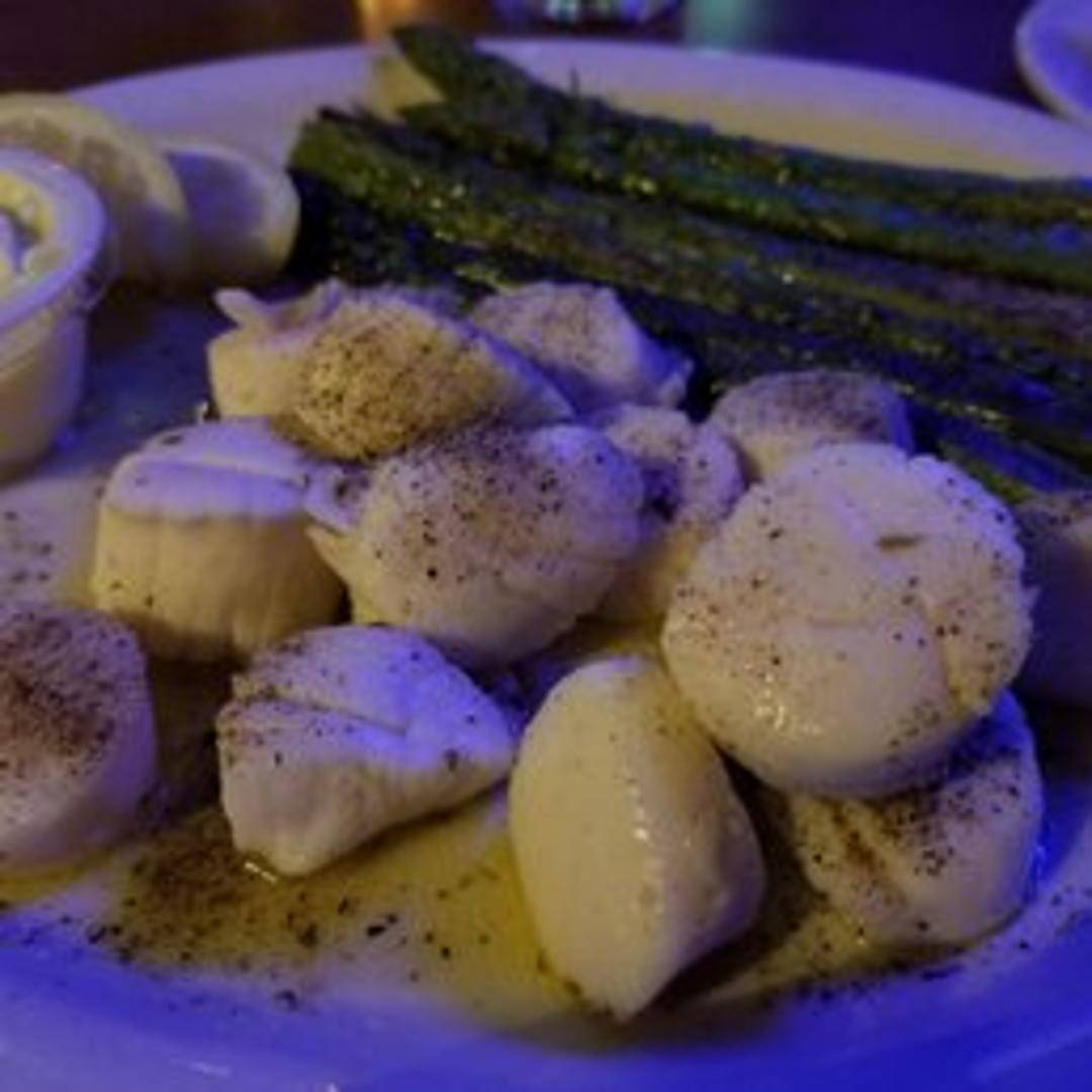 Pan-seared [or specify other method] scallops, perfectly cooked to a golden brown, tender interior. Served with [Specify sauce/accompaniments, e.g., a lemon butter sauce, risotto].