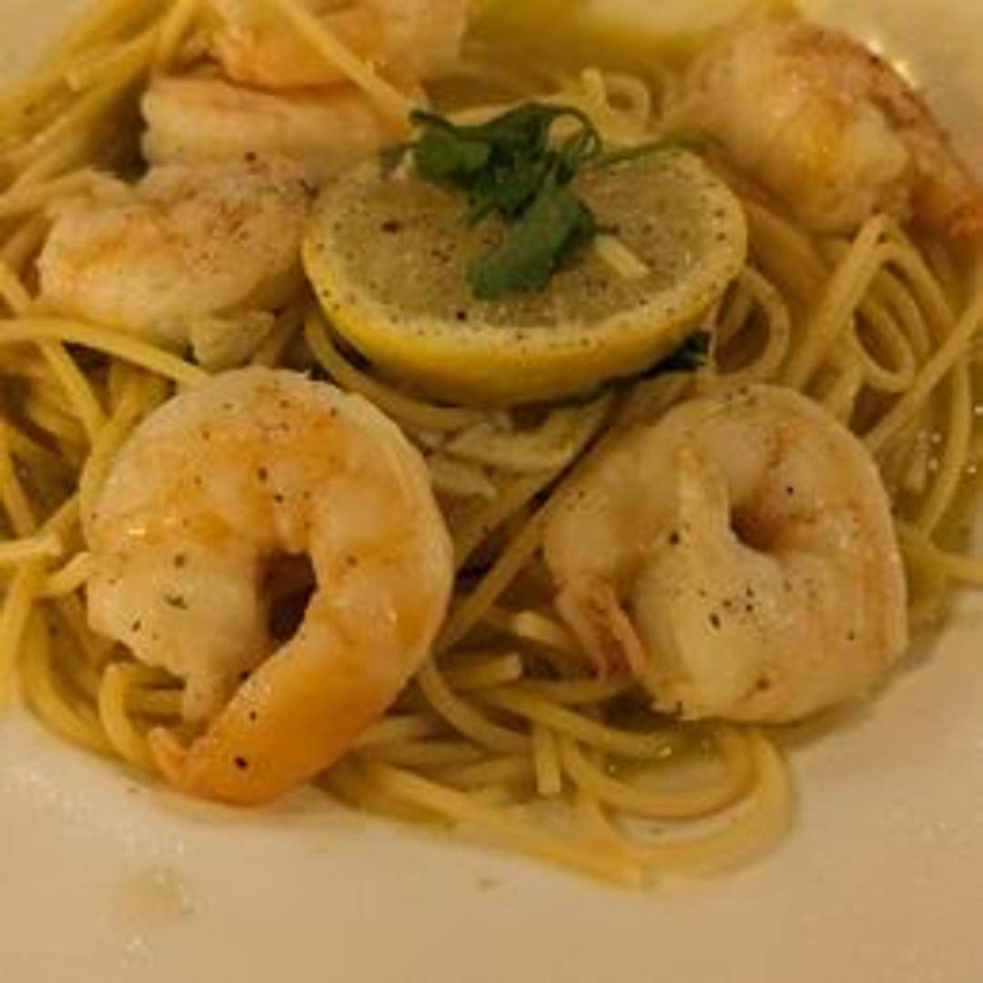 A delectable pasta dish featuring succulent shrimp tossed with your choice of pasta (specify preference when ordering) in a flavorful sauce. The sauce includes fresh herbs, garlic, and a touch of white wine, creating a harmonious blend of flavors. Served with a sprinkle of Parmesan cheese and a lemon wedge.