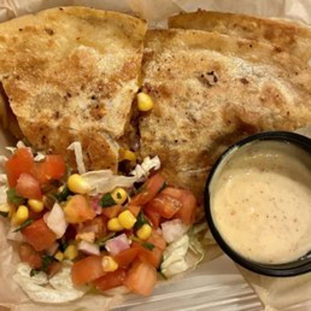 Grilled flour tortilla filled with seasoned shrimp, crispy bacon, melted cheese, and pico de gallo. Served with a side of sour cream and salsa.