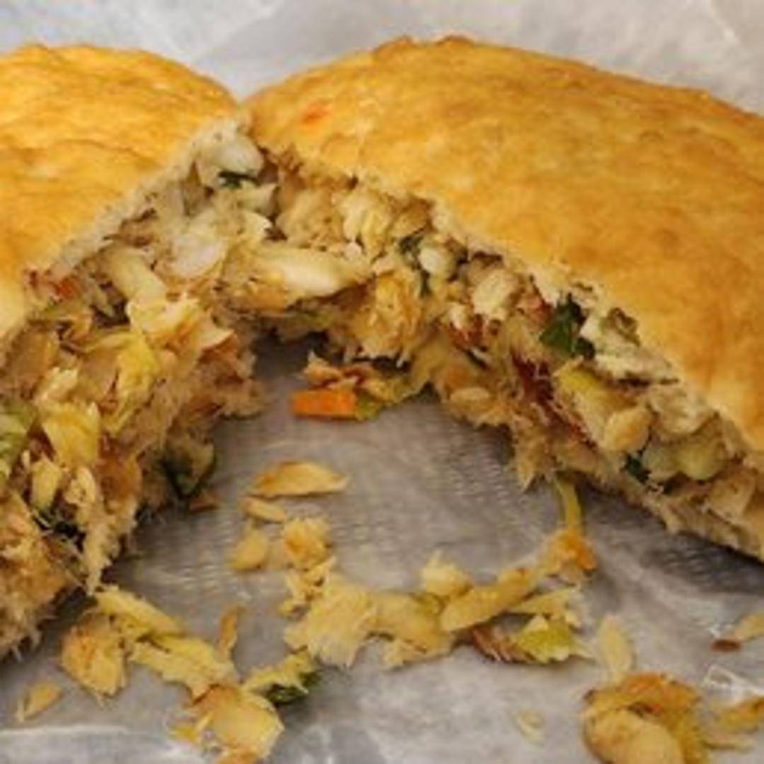 Fluffy and slightly sweet fried bake (a type of bread) paired with seasoned salt fish (typically cod). A classic Trini breakfast or anytime meal, offering a savory and satisfying combination of flavors and textures. May contain traces of nuts.