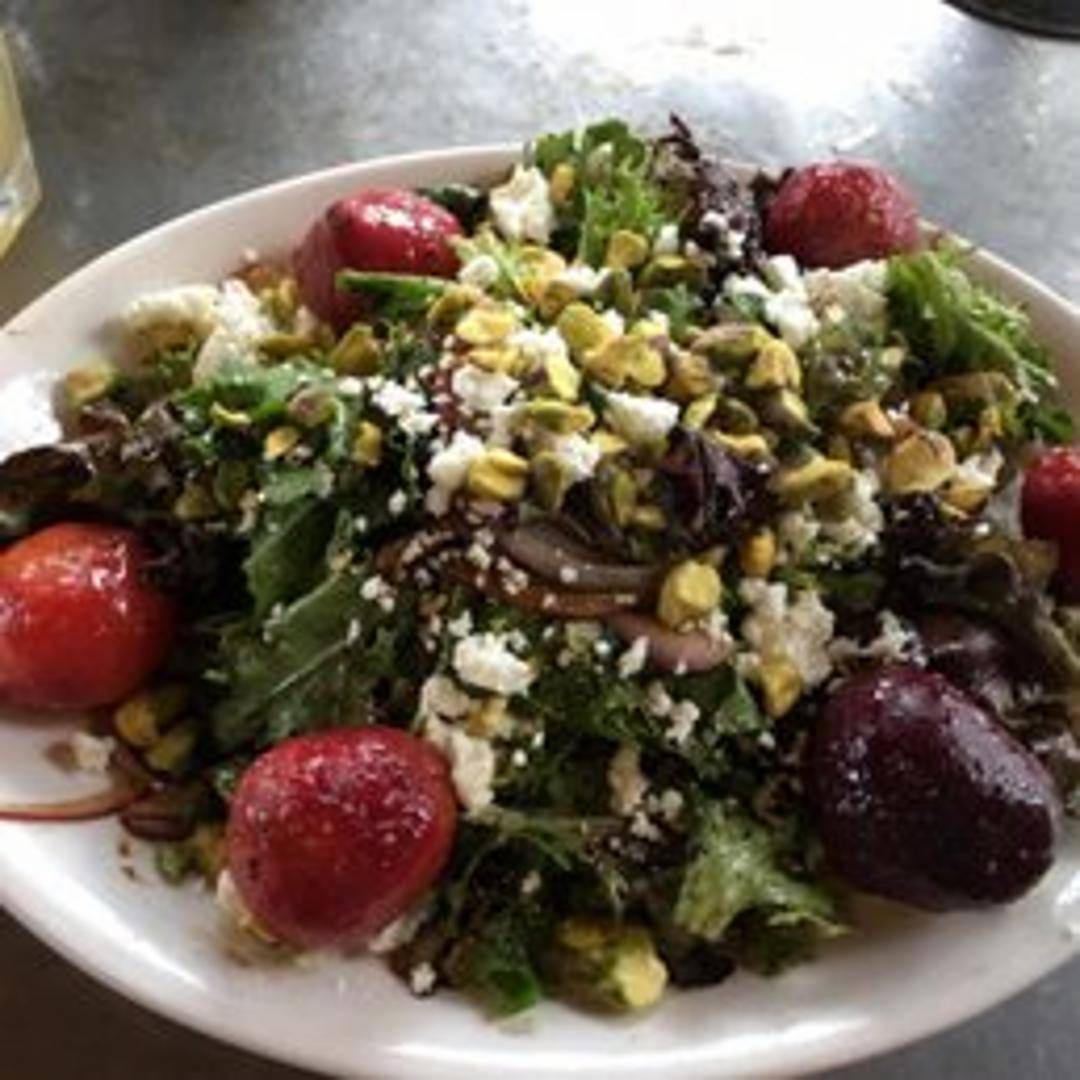 A vibrant and refreshing salad featuring roasted beets, crumbled goat cheese, candied walnuts, and mixed greens, tossed in a light vinaigrette. A perfect balance of sweet, savory, and earthy flavors.