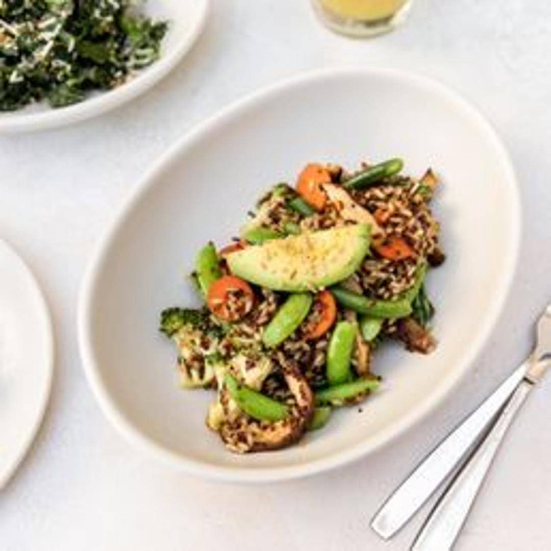 A wholesome and flavorful bowl featuring fluffy quinoa as its base, generously topped with a medley of vibrant, seasonal vegetables and your choice of protein, all coated in a rich, savory house-made teriyaki glaze. Garnished with fresh herbs and sesame seeds for an authentic finish.