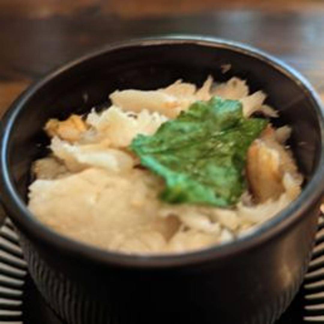 A savory Japanese steamed egg custard. It's a delicate and silky dish often served as an appetizer. Typically contains dashi broth, eggs, and a variety of ingredients such as shiitake mushrooms, ginkgo nuts, kamaboko (fish cake), chicken, shrimp, or vegetables, all steamed together for a smooth and flavorful result.