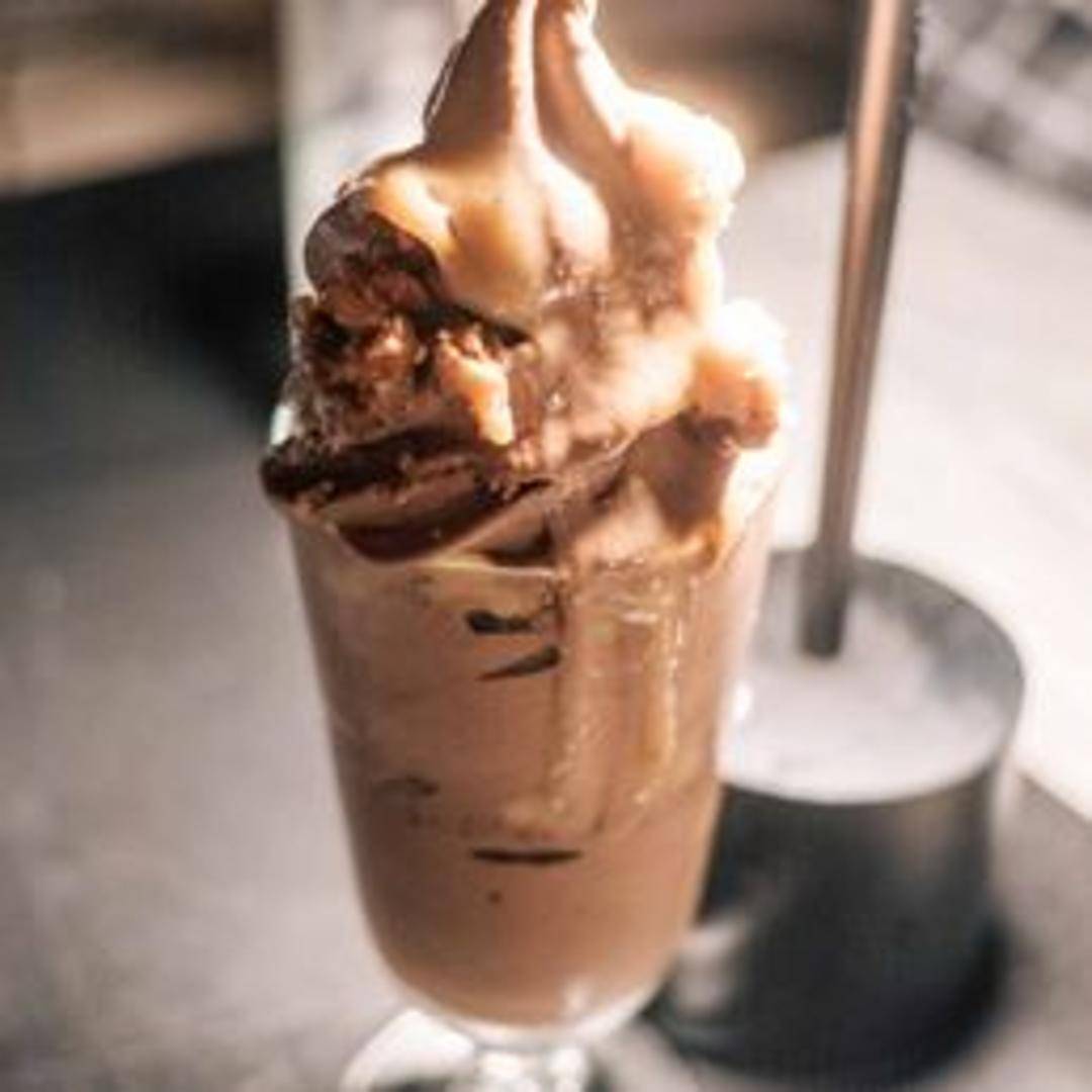 A layered Japanese-inspired dessert featuring hojicha roasted green tea ice cream, often combined with ingredients like mochi, red bean paste (anko), warabi mochi, crispy rice puffs, and kuromitsu (Japanese black sugar syrup). A textural and flavorful experience, balancing bitterness, sweetness, and nutty, earthy notes from the hojicha.