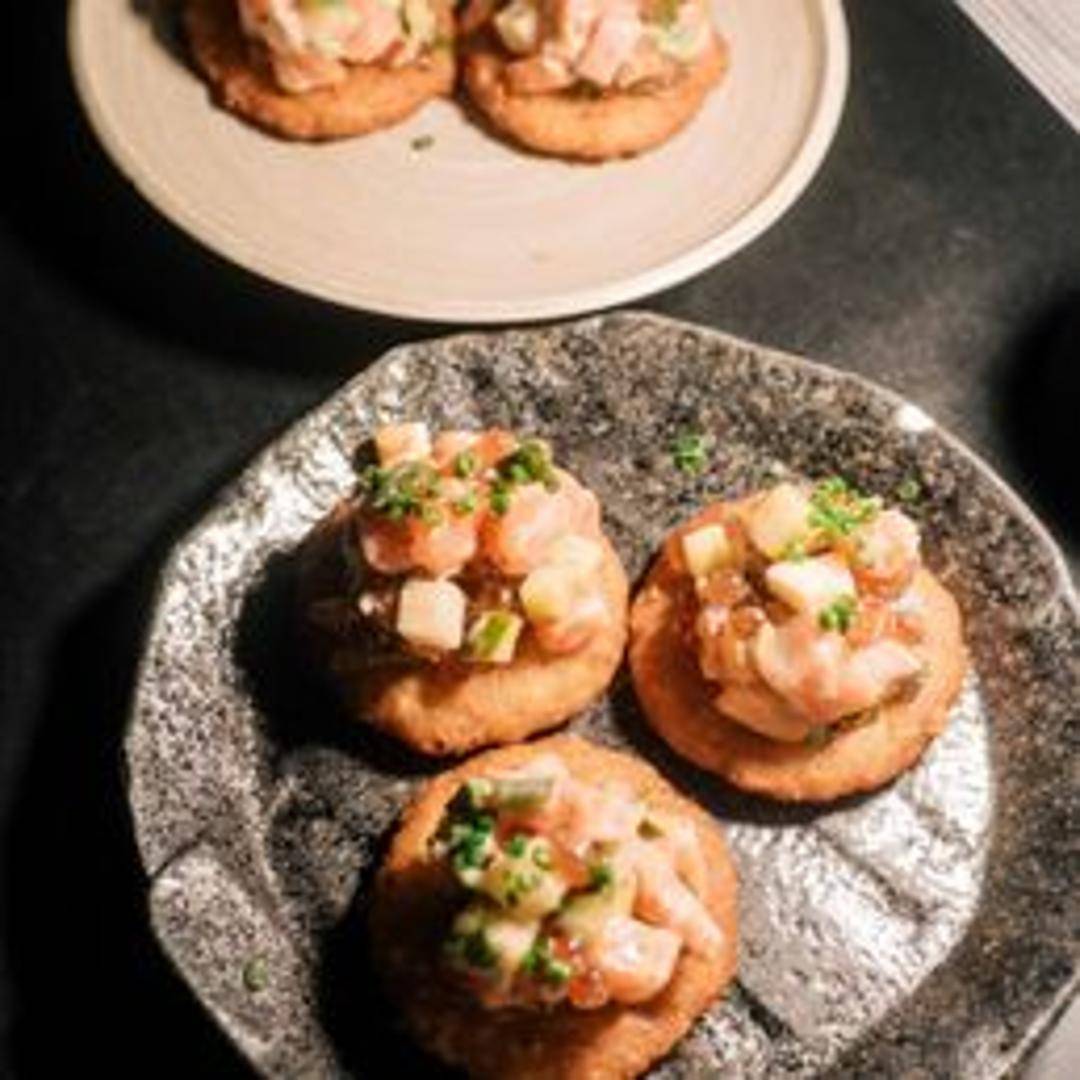 Savory pancakes inspired by traditional latkes, but with a Japanese twist. Likely featuring finely grated vegetables, Japanese spices, and potentially dashi or soy sauce for a deeper, umami flavor. Crispy on the outside and tender on the inside, served with a complementary dipping sauce or topping.