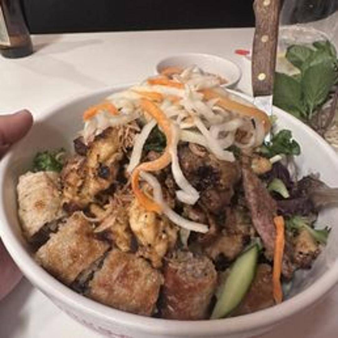 Rice noodles topped with your choice of protein (grilled pork, chicken, or tofu), fresh vegetables, herbs, and a savory sauce.