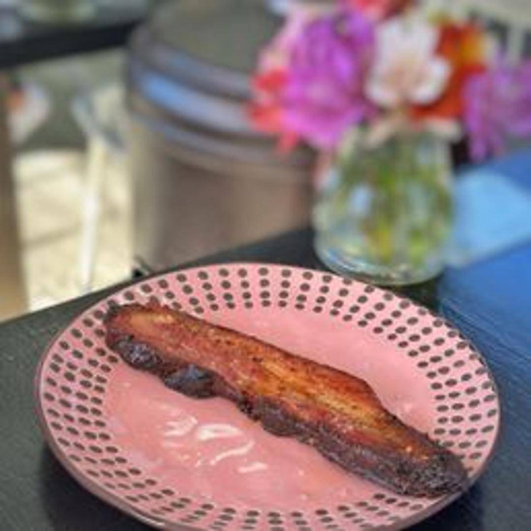 Generously thick slices of bacon, cooked to crispy perfection.