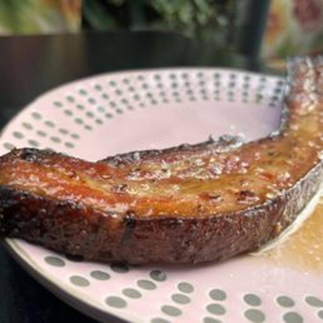Thick-cut bacon candied with a sweet and savory glaze, offering a rich and indulgent flavor.