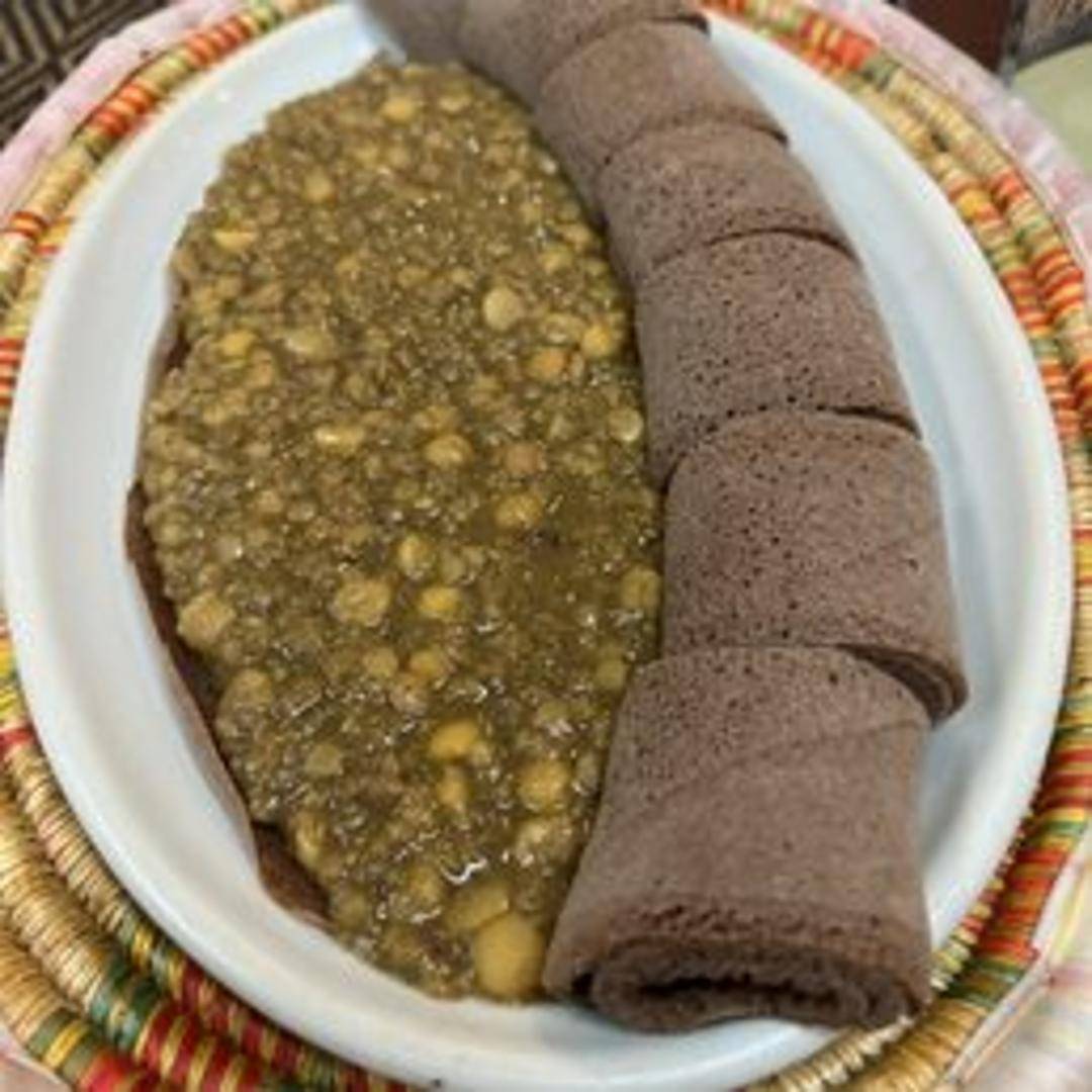 A mild and flavorful lentil stew, simmered with onions, garlic, ginger, and other spices.