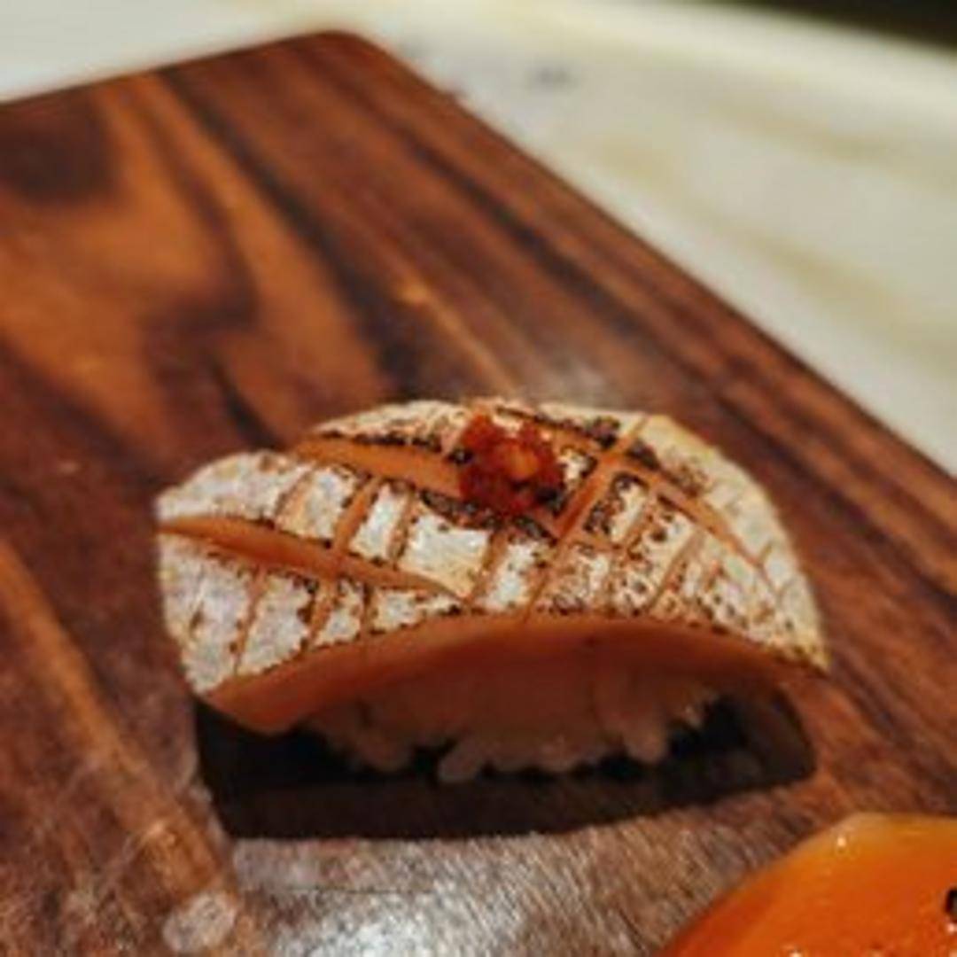 Salmon belly, prized for its high fat content and melt-in-your-mouth texture.
