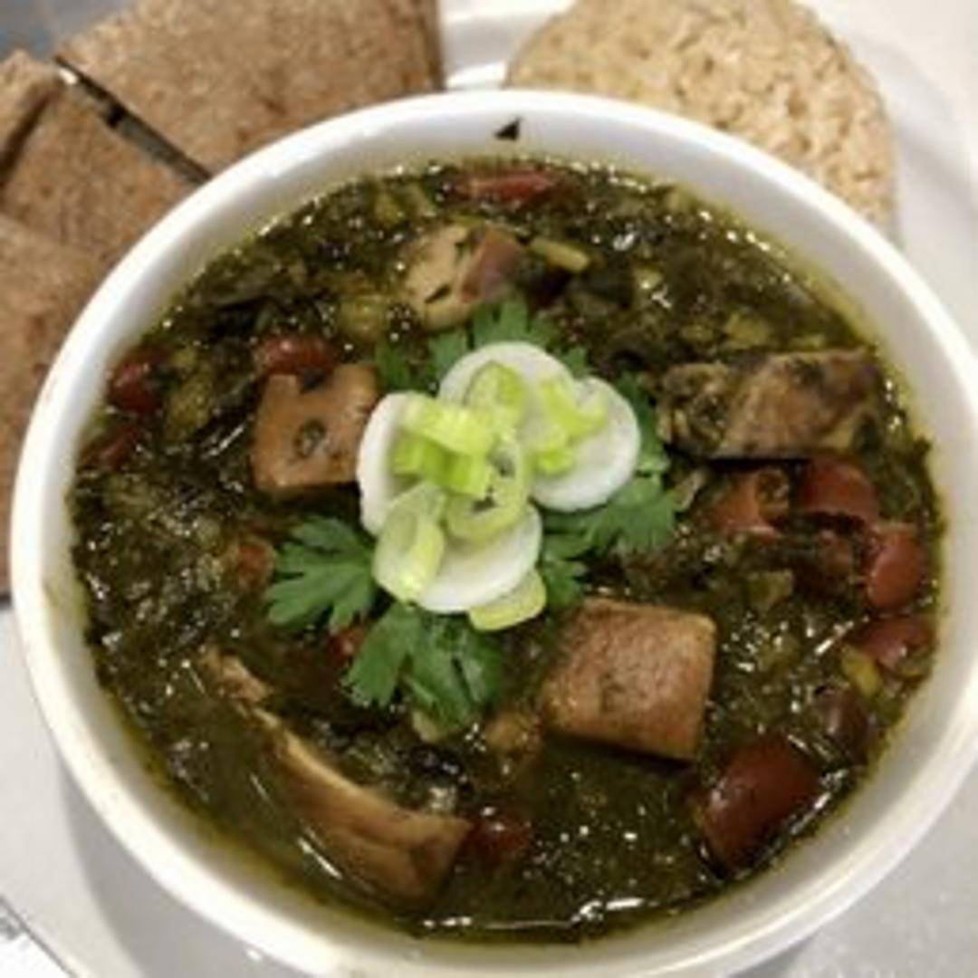 A flavorful and aromatic Persian herb stew with kidney beans, dried lime, and tender pieces of beef. Served with basmati rice.
