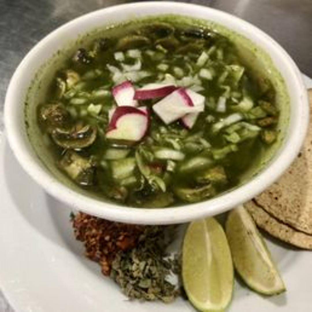 A hearty and flavorful Mexican soup made with hominy, chicken or pork (check availability), and a rich green broth of tomatillos, peppers, and herbs. Garnished with shredded cabbage, onion, cilantro, and lime wedges.