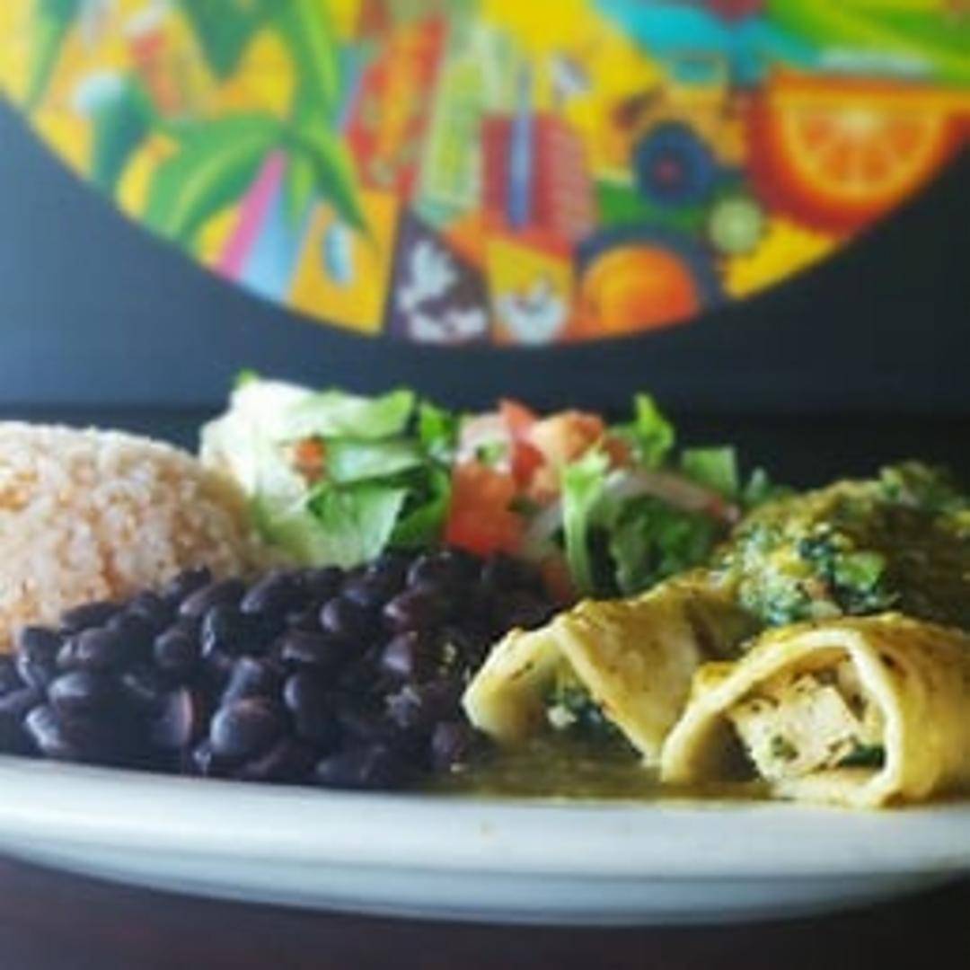 Corn tortillas filled with a medley of vegetables, such as squash, corn, and zucchini, and cheese, smothered in a flavorful enchilada sauce. Topped with melted cheese and often served with sour cream, guacamole, and rice and beans.