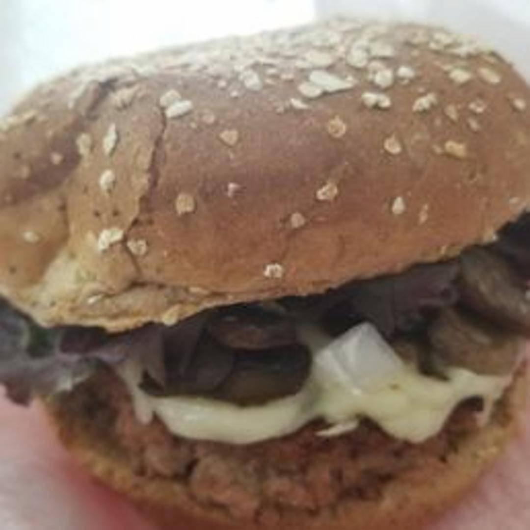 A plant-based masterpiece. A flavorful vegan patty is topped with fresh lettuce, sliced tomato, onion, and a vegan-friendly sauce on a toasted bun. 100% plant based, gluten free option available.