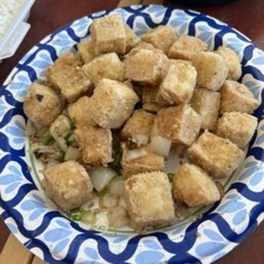 Crispy fried tofu seasoned with a fragrant blend of salt, pepper, and spices. A popular vegetarian option.
