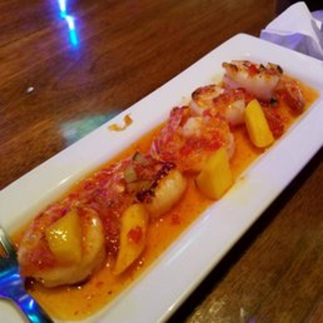 Succulent grilled shrimp glazed with a sweet and tangy mango salsa, served over a bed of rice.