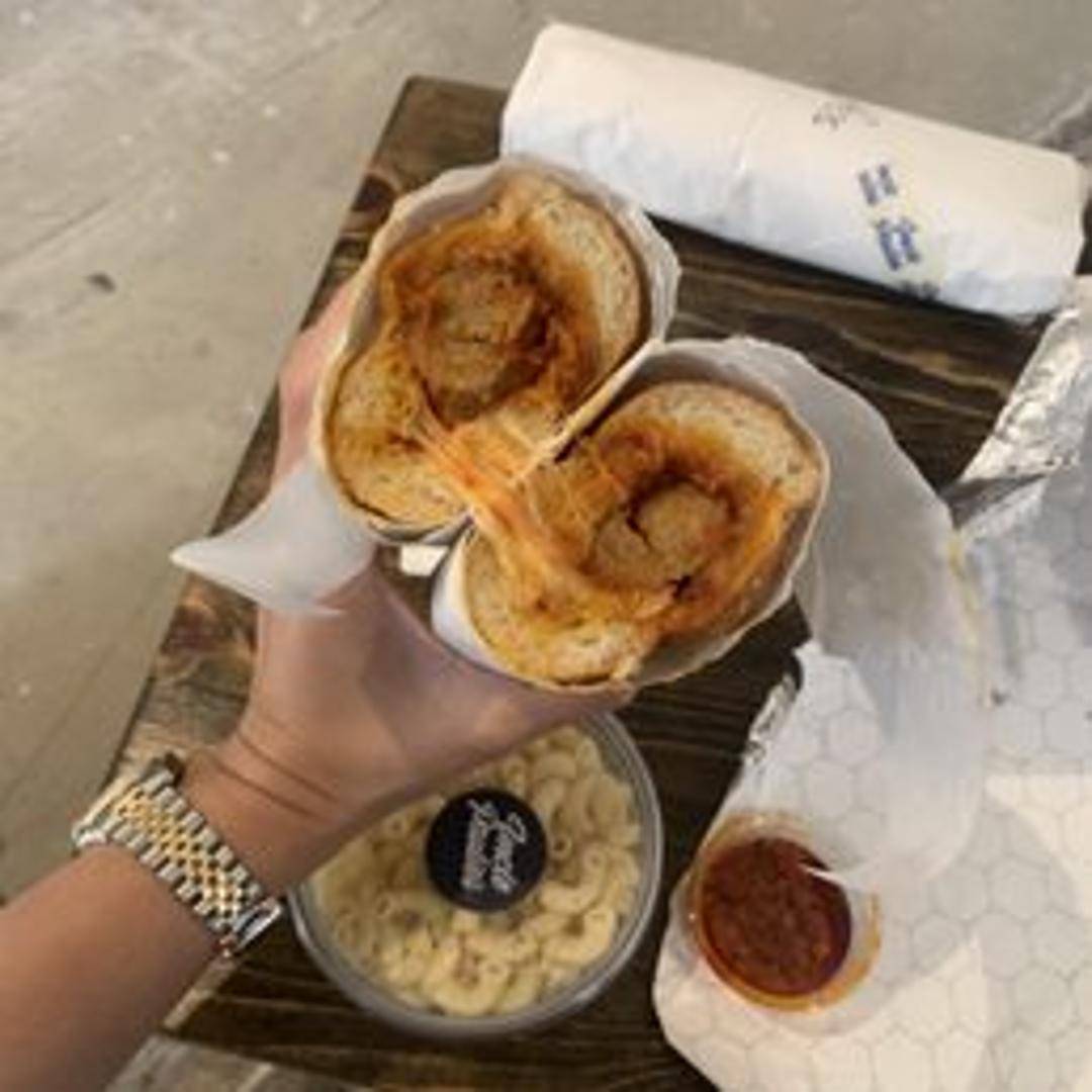 Classic Italian-American sandwich featuring homemade meatballs simmered in marinara sauce, topped with melted mozzarella and Parmesan cheese, served on a toasted hero roll.