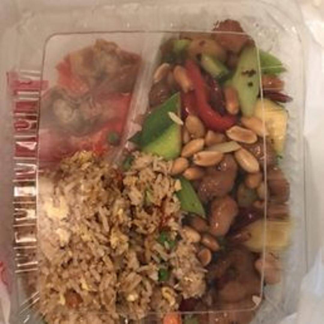Diced chicken stir-fried with peanuts, chili peppers, and diced vegetables in a spicy and savory Kung Pao sauce. Features a balanced flavor profile of sweet, sour, and spicy notes.