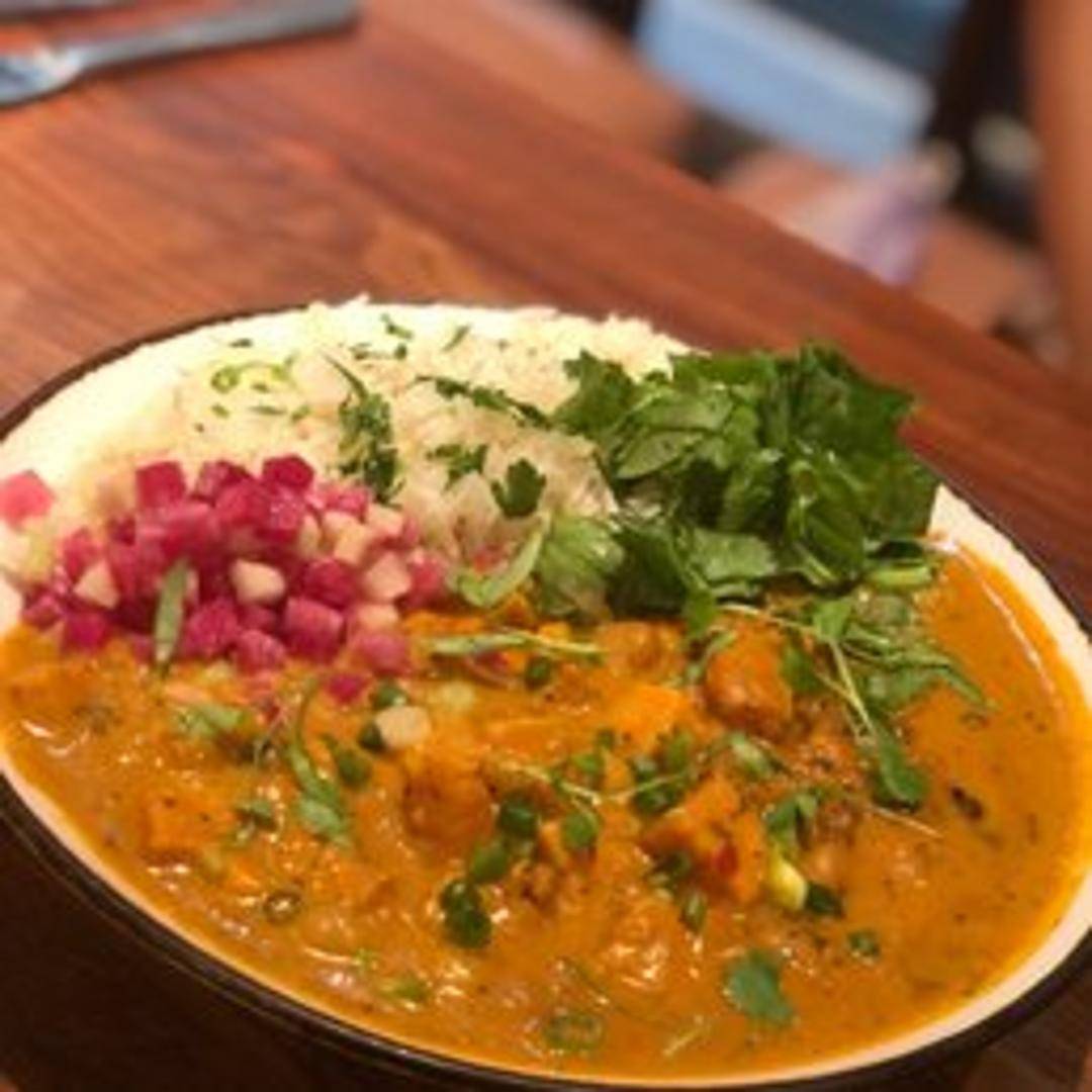 Experience a vibrant and comforting Sweet Potato Curry, a signature dish from Unconventional Diner. This hearty and flavorful curry features tender chunks of sweet potato simmered in a rich, aromatic coconut milk broth infused with a blend of exotic spices. It’s a perfect balance of savory and subtly sweet, offering a warm and satisfying culinary journey that is both nourishing and deeply delicious. A delightful option for those seeking a plant-forward and uniquely spiced meal.