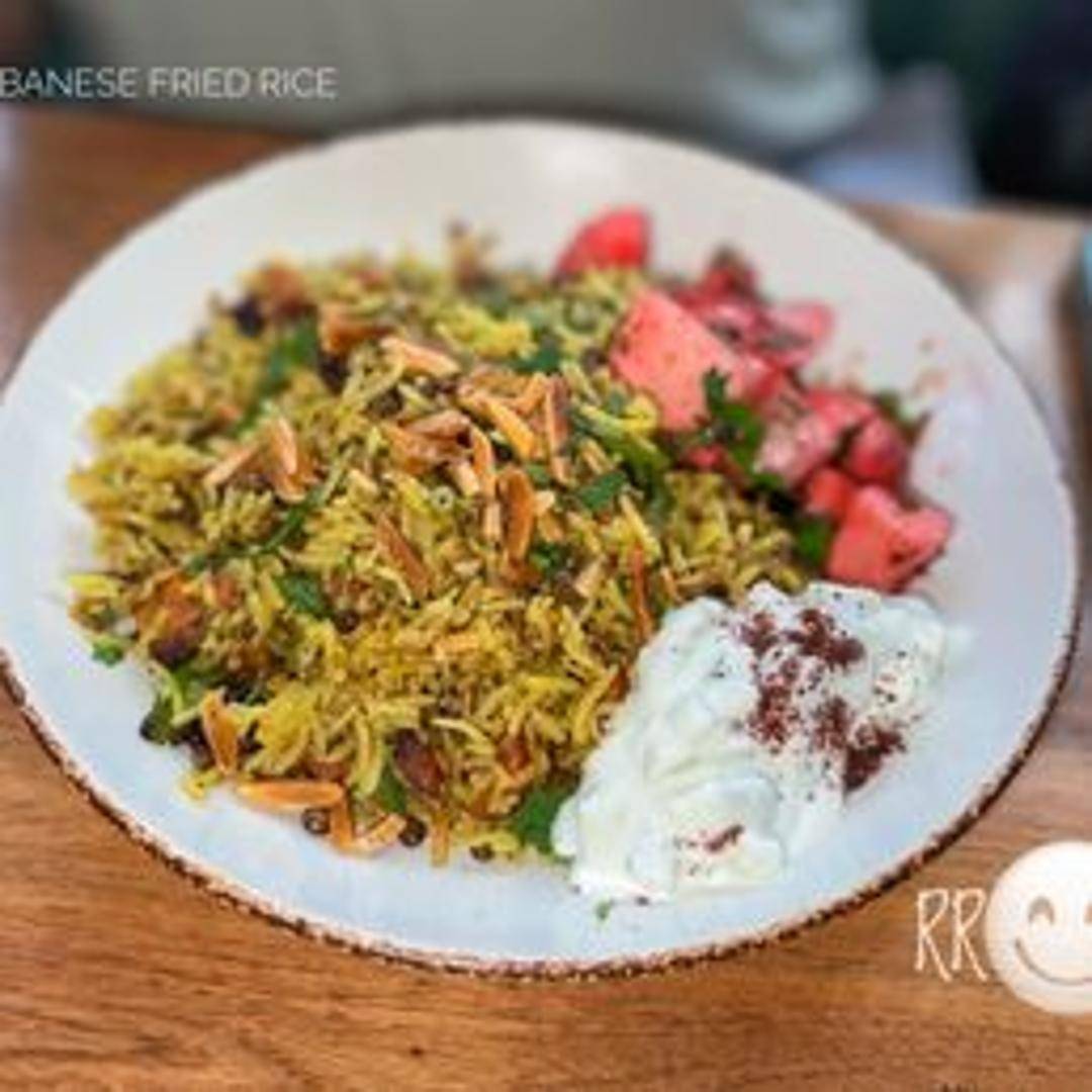 An imaginative fusion dish that reimagines traditional fried rice with vibrant Middle Eastern flavors. This unique creation features fluffy rice stir-fried with an aromatic blend of Lebanese spices, fresh herbs, and an assortment of vegetables and perhaps a choice of protein, offering a delightful and unexpected culinary journey for the palate.