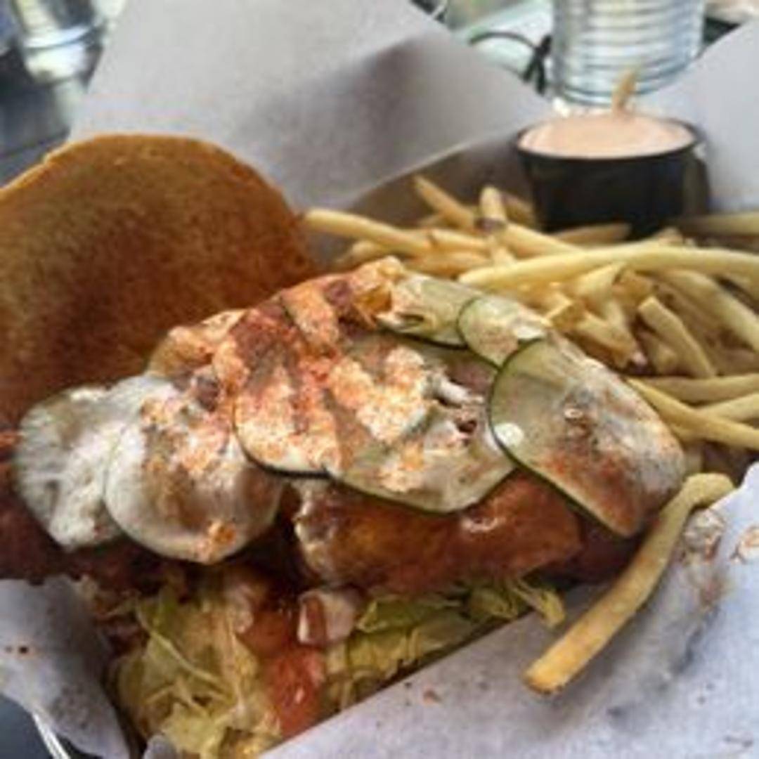 Crispy, juicy fried chicken breast served on a toasted bun with lettuce, tomato, and your choice of mayonnaise or spicy aioli.