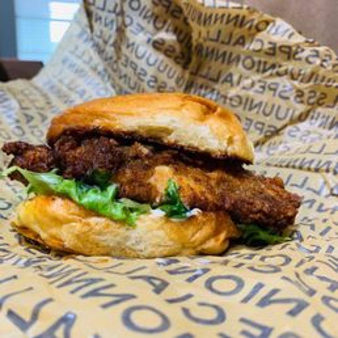 Our classic Chicken Sandwich features a succulent, perfectly cooked chicken breast, crisp lettuce, ripe tomato, and a touch of our signature sauce, all served on a soft, toasted bun baked fresh in our bakery. A simple yet perfectly executed choice for any meal.