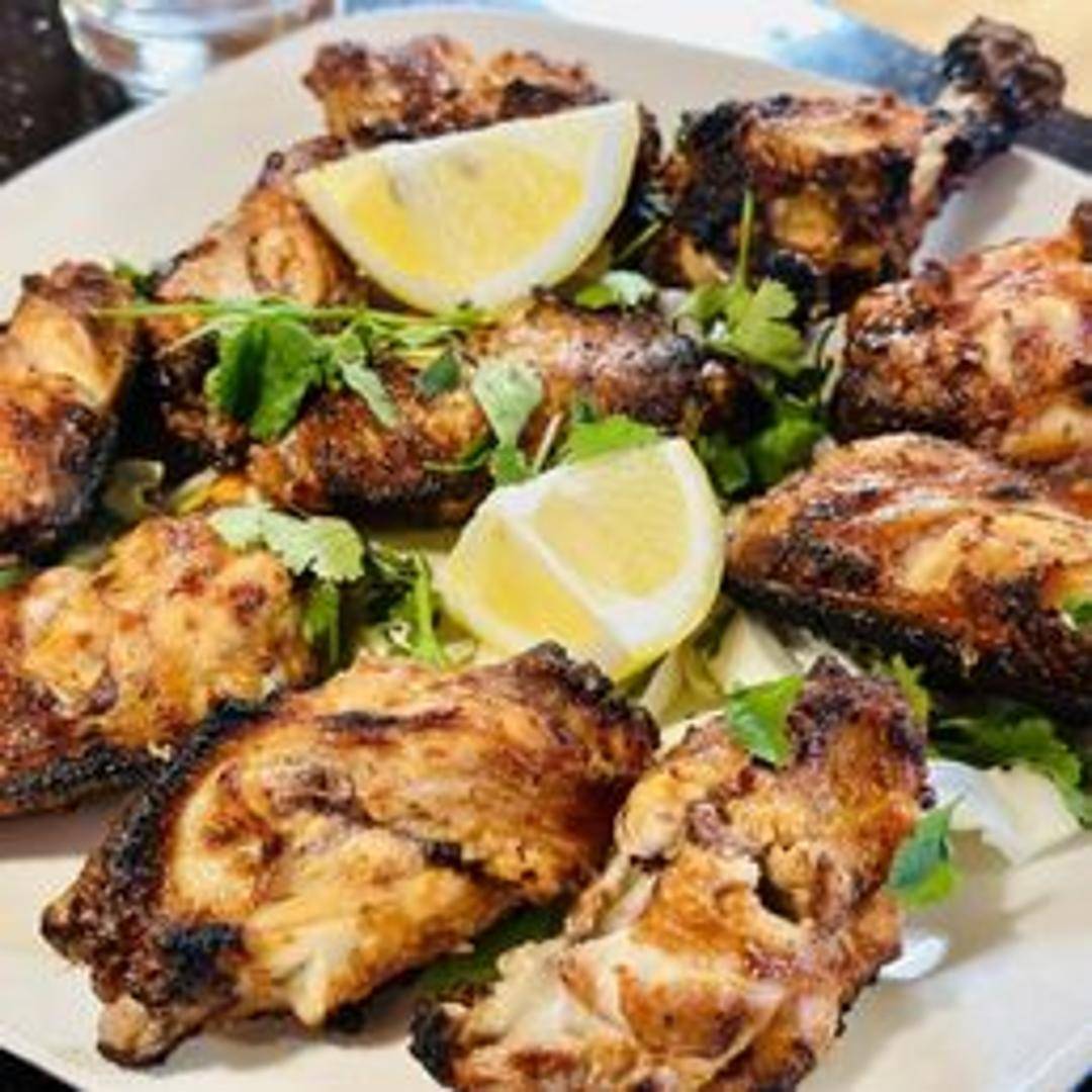 Crispy chicken wings marinated in Indian spices and deep-fried or baked.