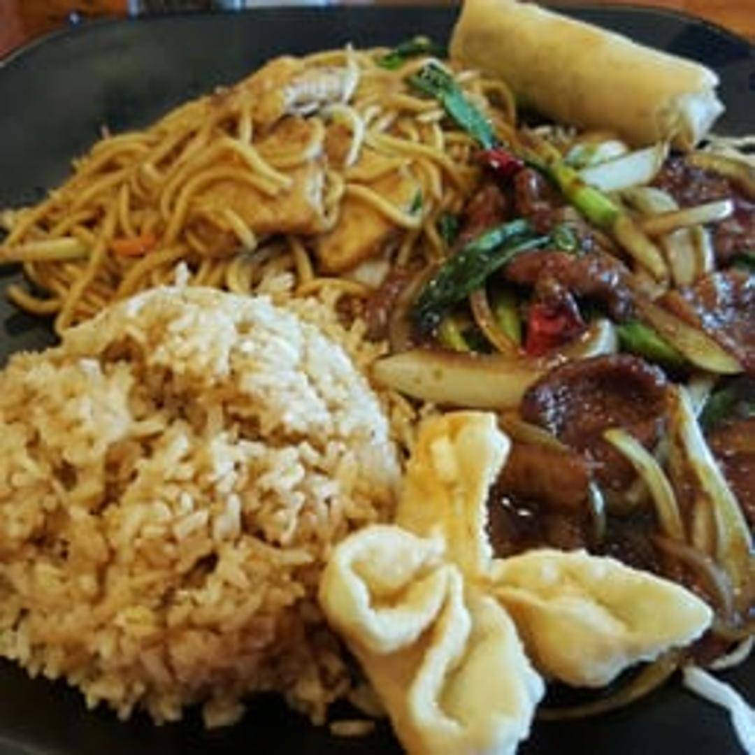 Tender slices of beef stir-fried with scallions and onions in a savory and slightly sweet Mongolian sauce, typically served over crispy rice noodles.