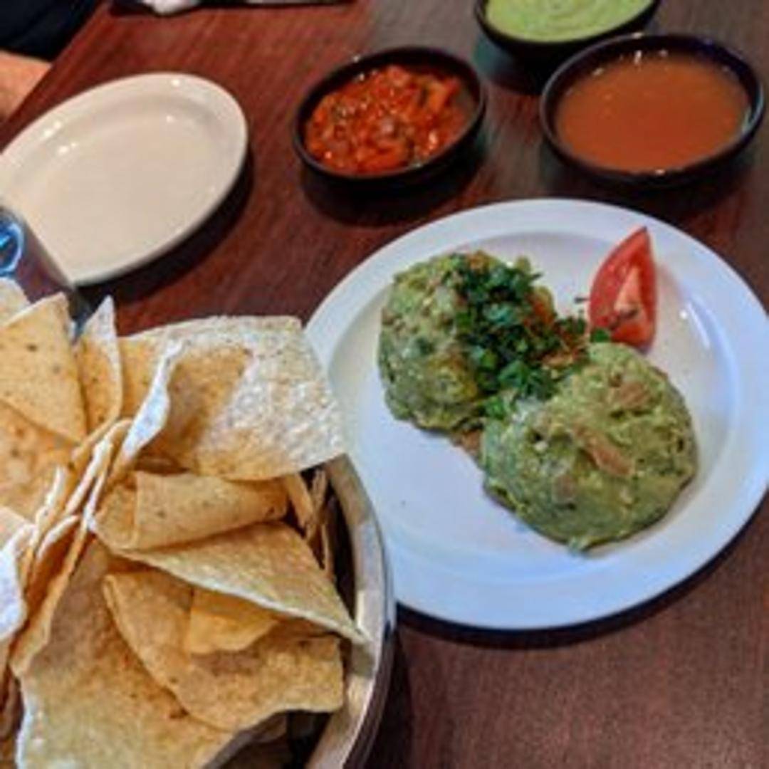 A selection of three different salsas, ranging from mild to spicy, served with tortilla chips.