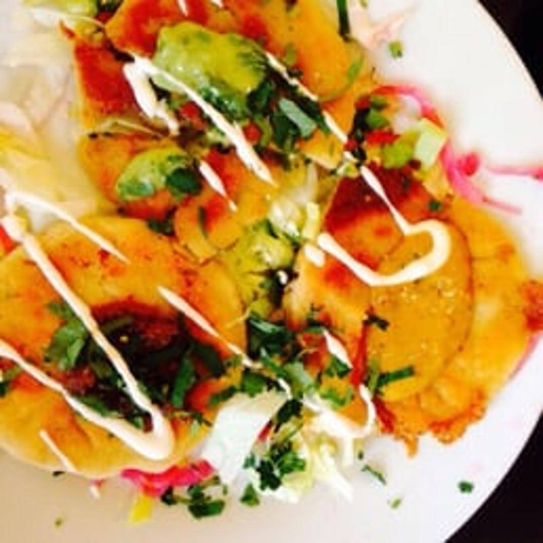Thick, handmade flatbread stuffed with your choice of fillings. Options typically include cheese, refried beans, pork (chicharrón), or a combination. Served with curtido (a fermented cabbage slaw) and salsa roja.