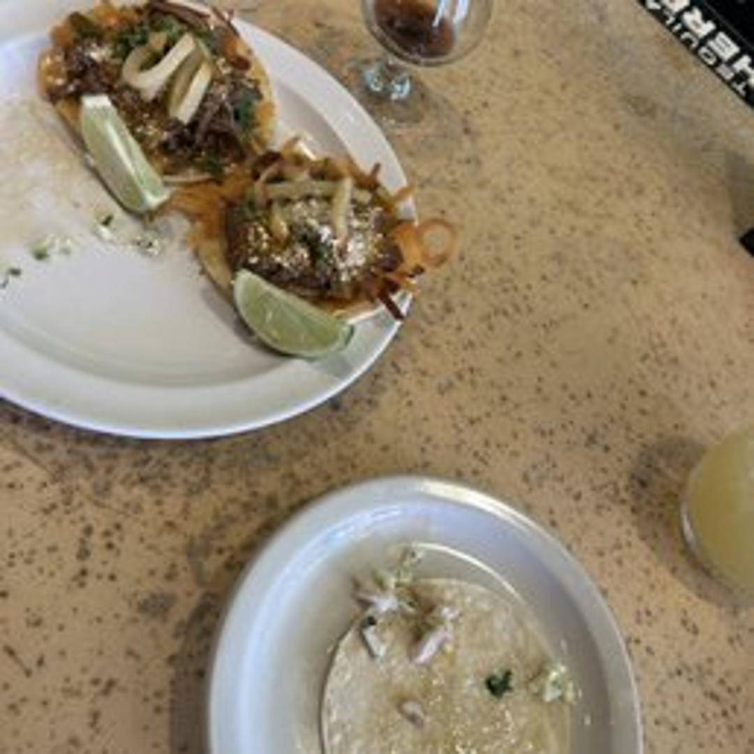 Lightly battered and fried or grilled white fish, served in warm corn tortillas. Usually topped with shredded cabbage, pico de gallo, and a creamy baja sauce. Served with your choice of salsa.