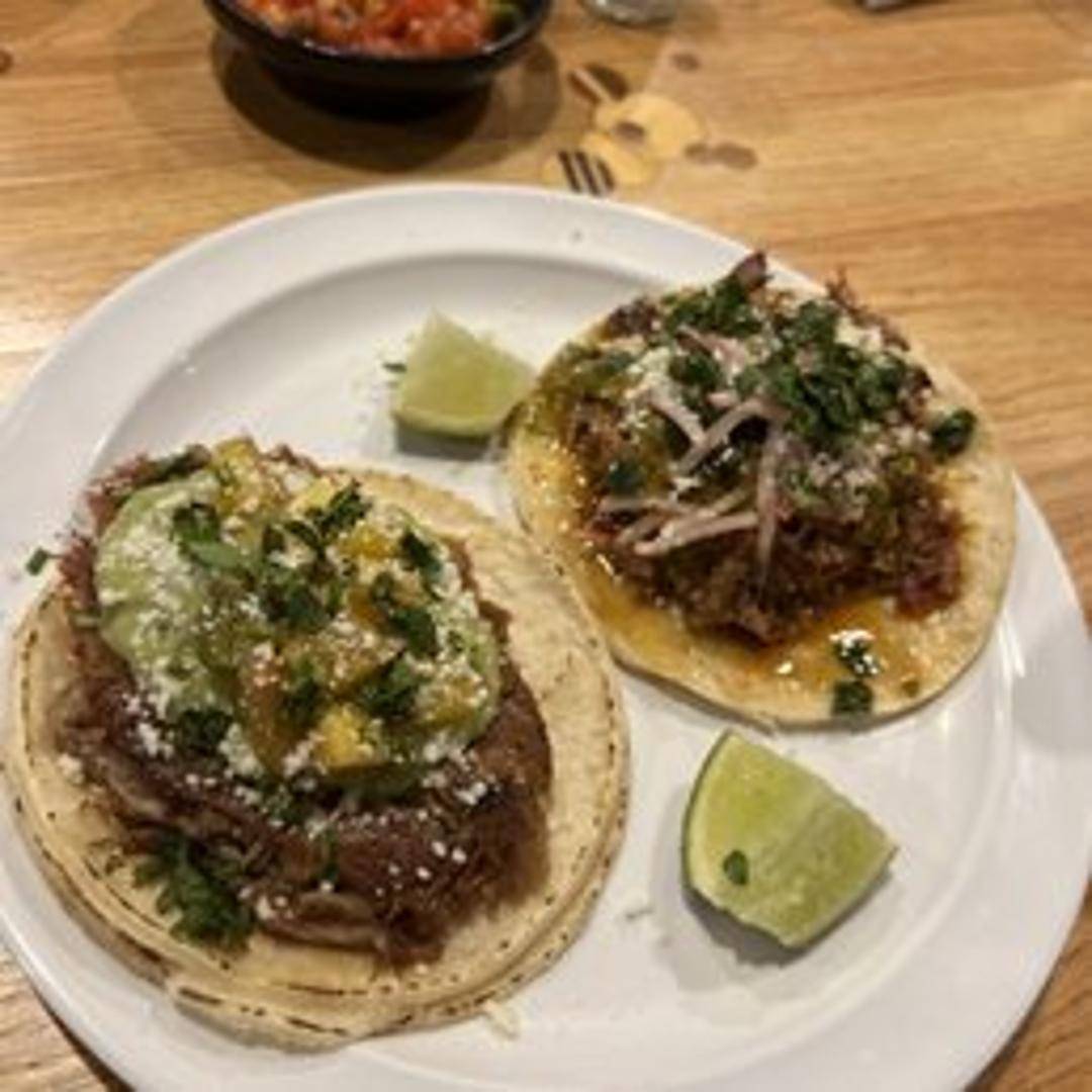 Shredded duck confit, slow-cooked and rich in flavor. Served in a soft tortilla, accompanied by complementary toppings that balance the richness of the duck.