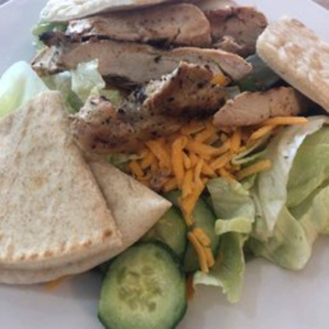 Fresh mixed greens topped with grilled chicken breast, tomato, cucumber, red onion, and your choice of dressing.