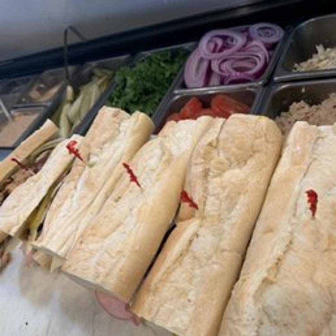 Authentic Cuban sandwich featuring roasted pork, sliced ham, Swiss cheese, pickles, and mustard pressed to golden perfection on Cuban bread.