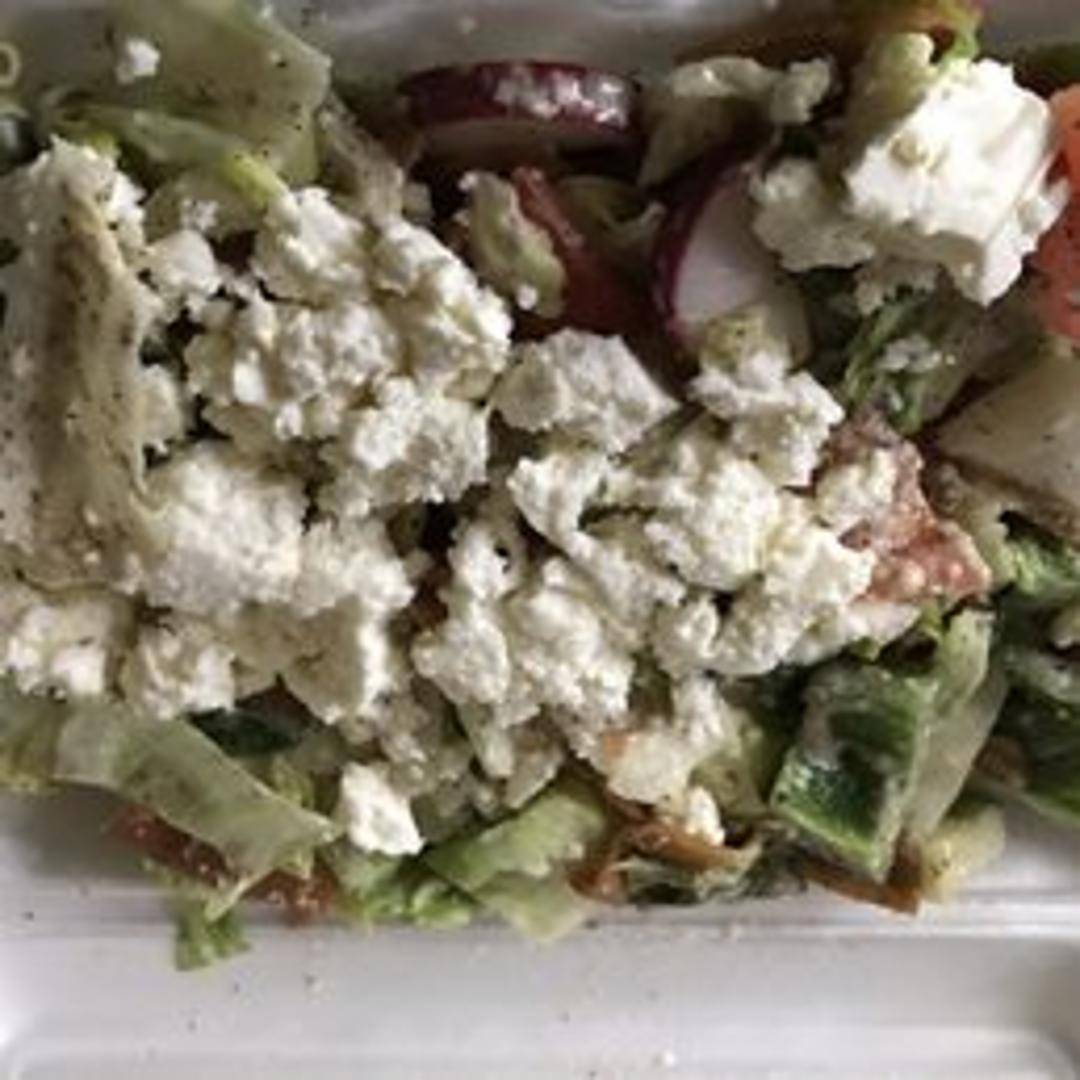 A vibrant Levantine salad made with a mix of fresh greens, tomatoes, cucumbers, radishes, and toasted pita bread pieces. Dressed with a zesty sumac vinaigrette.