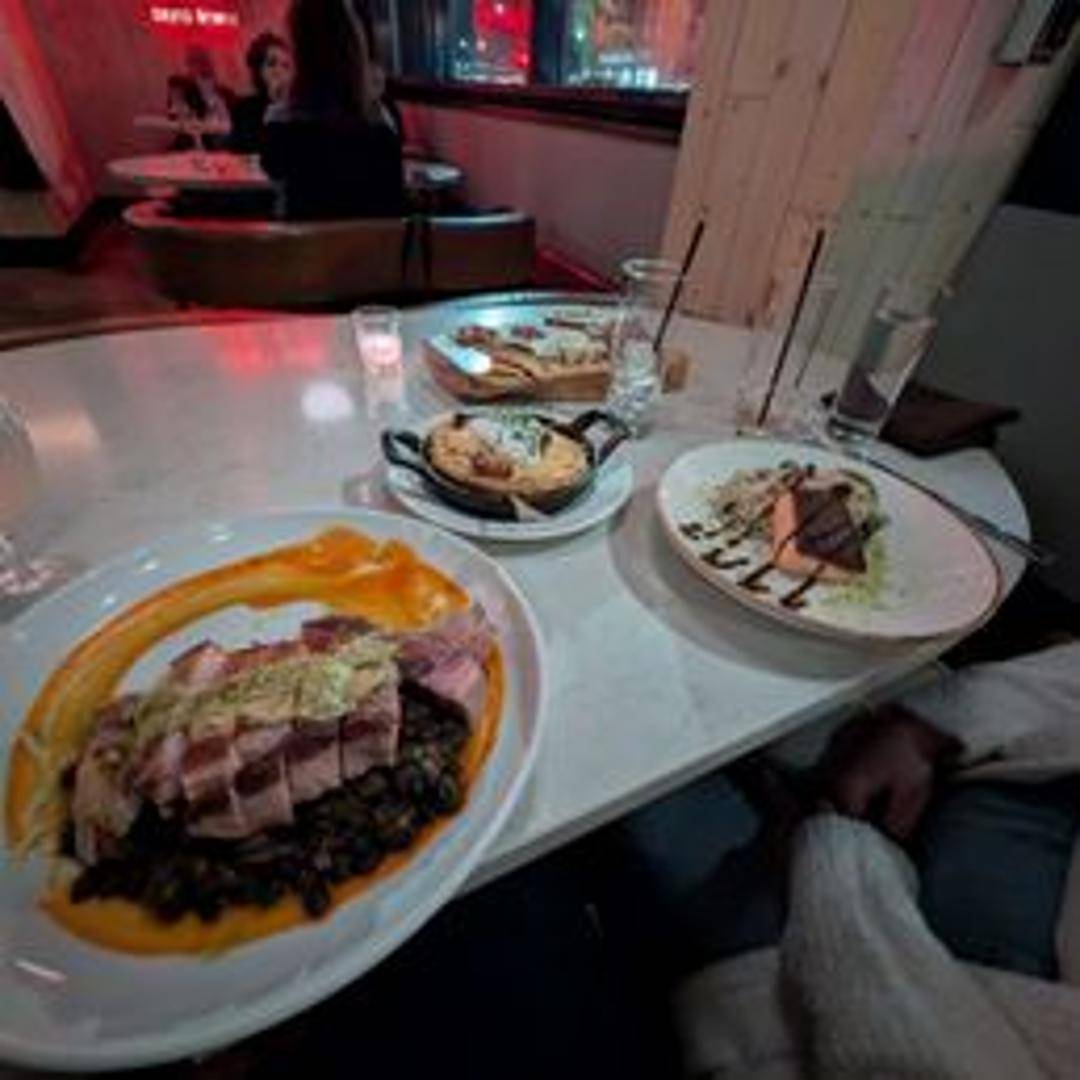 Bone-in pork chop, roasted to a juicy tenderness and often accompanied by seasonal vegetables, savory pan sauce or fruit compote.