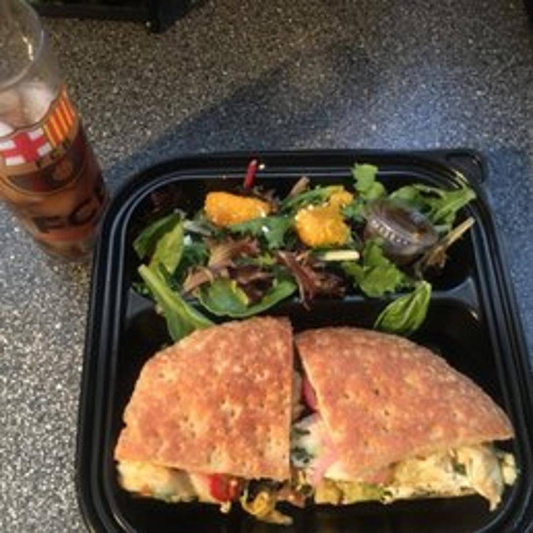 Roasted turkey breast, avocado, swiss cheese, tomatoes, sprouts, and aioli on toasted artisan bread.