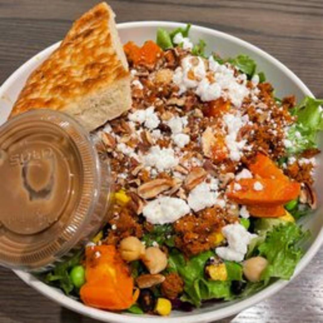 Spicy chorizo sausage, grilled and served as a protein addition to salads or sandwiches. Flavor profile includes smoky paprika, garlic, and other spices.
