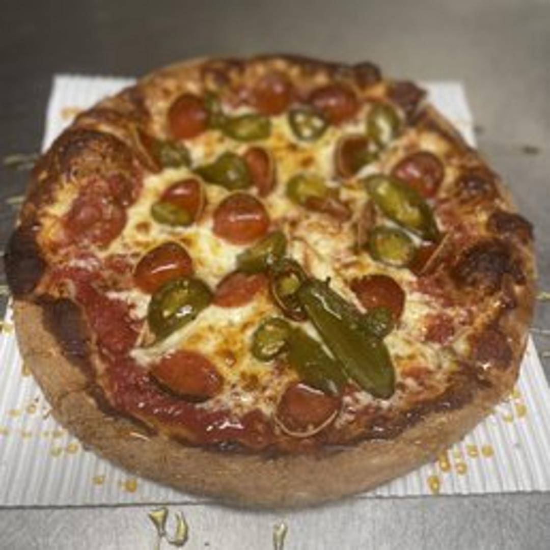 A flavorful pizza with a spicy kick! Topped with a drizzle of hot honey, mozzarella cheese, and your choice of toppings.